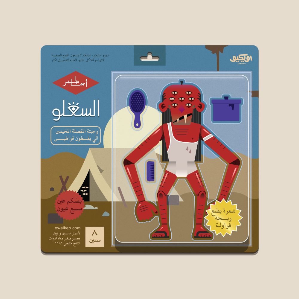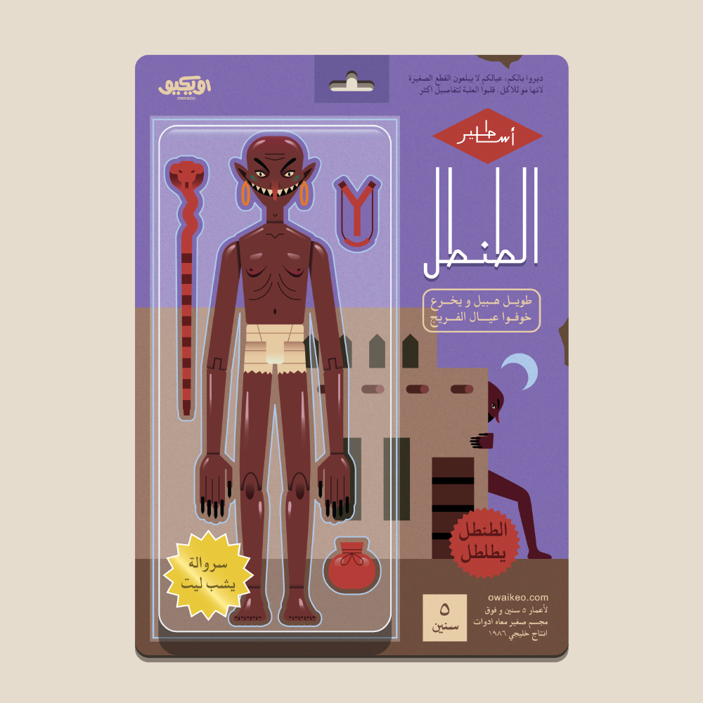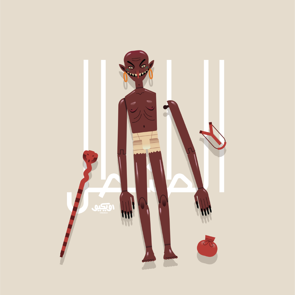 I've always loved the toys of the 1980's and as a tribute to their creative design, I tuned a couple of Middle Eastern folklore villans into toy illustrations. These legends were stories ancestors told about mythical creatures that are almost human who their sole purpose was to scare children. There isn't much info of each of those, I improvised their stories and entire looks to match some descriptions.