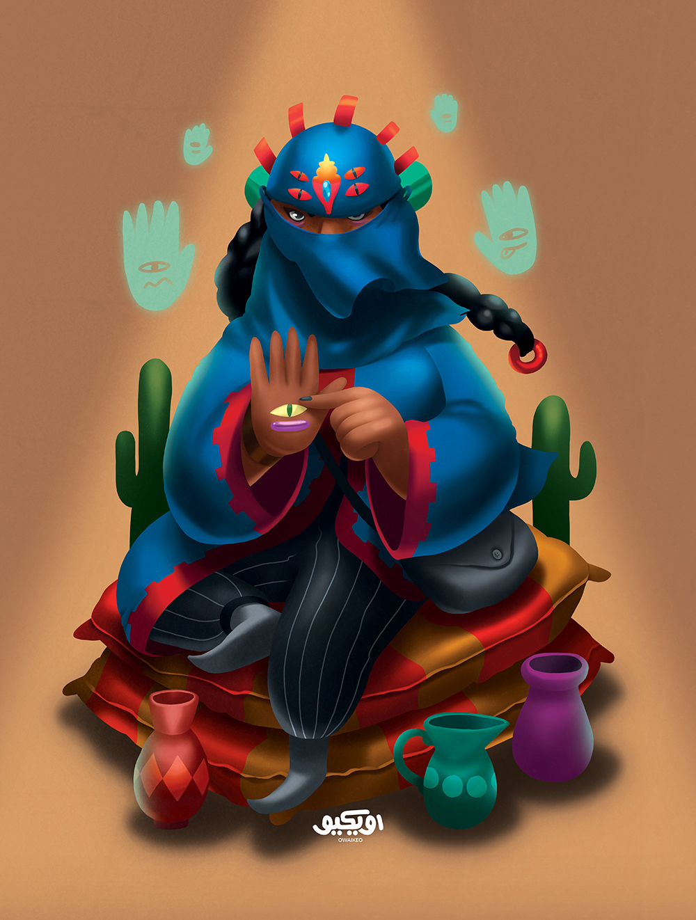 She is a fortune teller who has a strange mutation on her hands. She can tell fortunes of people through the eyes of the hand, or she could just be hallucinating her clients.