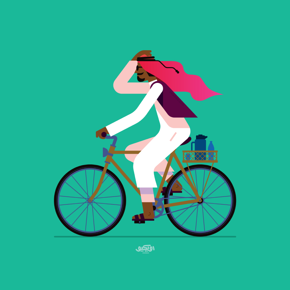 Just an Arab on a bicycle. This isn't a common scene as traditional clothing isn't practical for riding bicycles but this is my imagining of it.