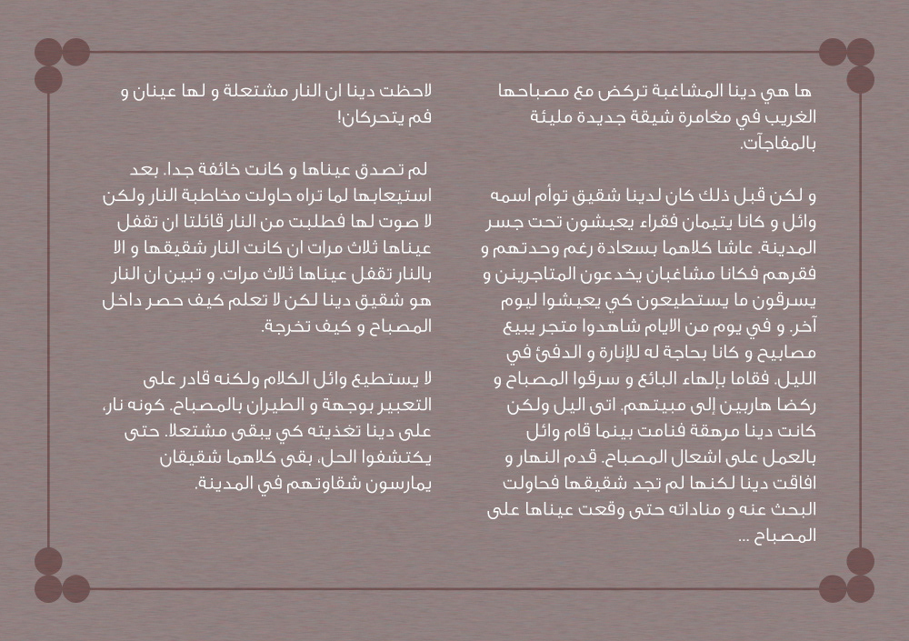 This is Deena and the Lamp. The lamp is her twin brother who has mysteriously been trapped in in this lamp.