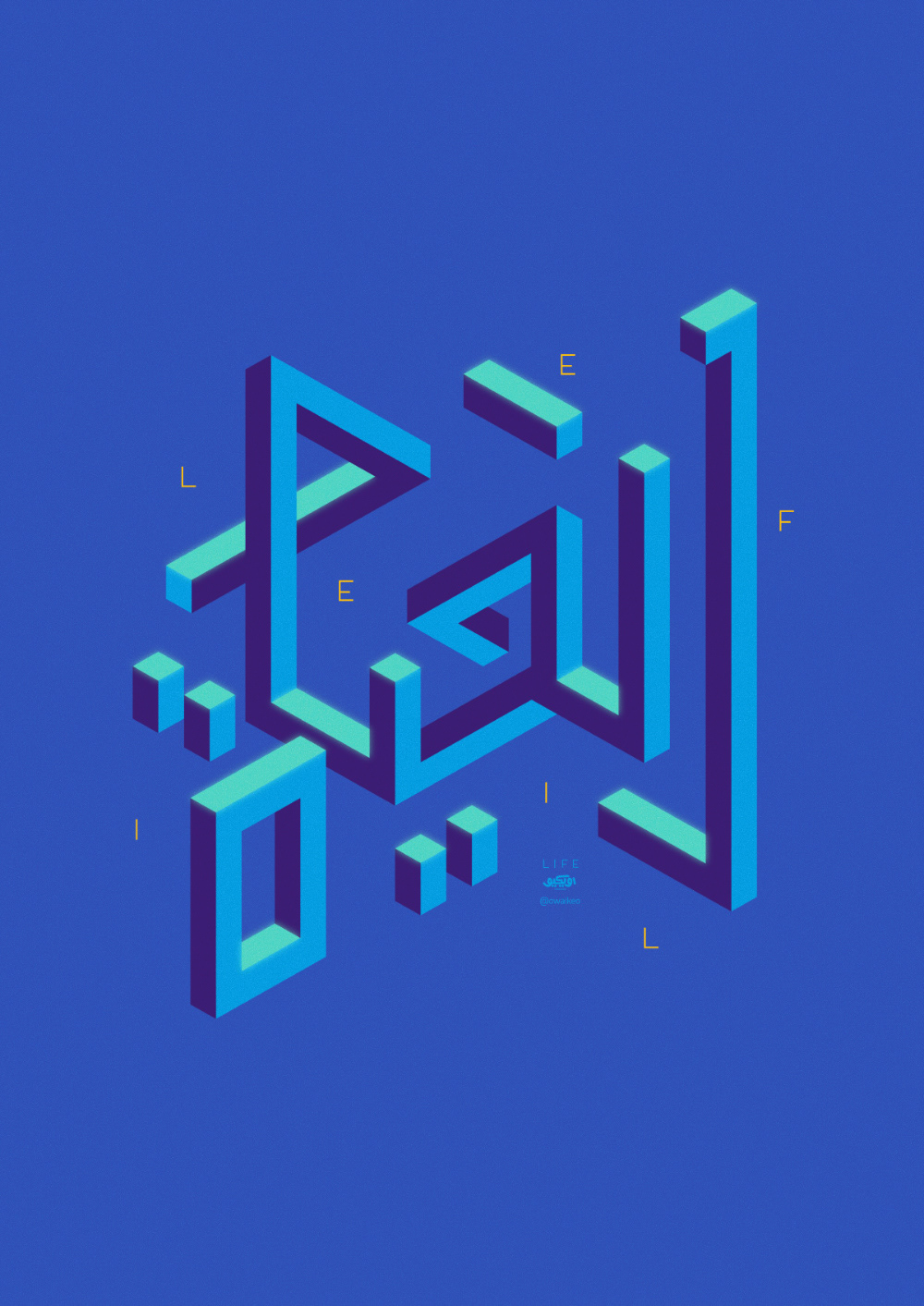 A geometric/isometric exploration of Arabic Calligraphy. This says "Life" in Arabic.