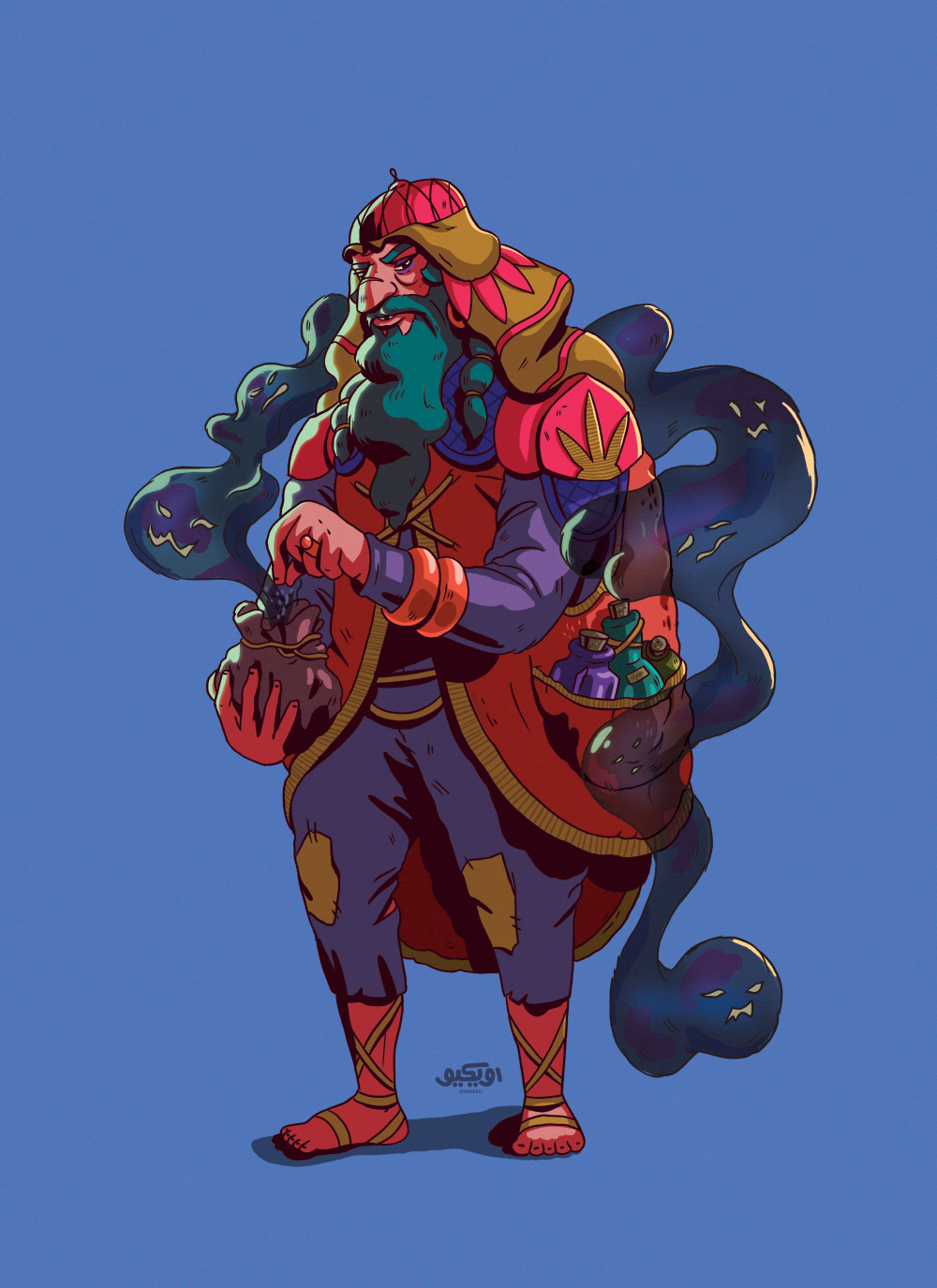 This is Man of Smoke, he was abused and locked up in a dark room as a child. He grew up and wanted to turn everything around him into darkness using the black smoke he brews.