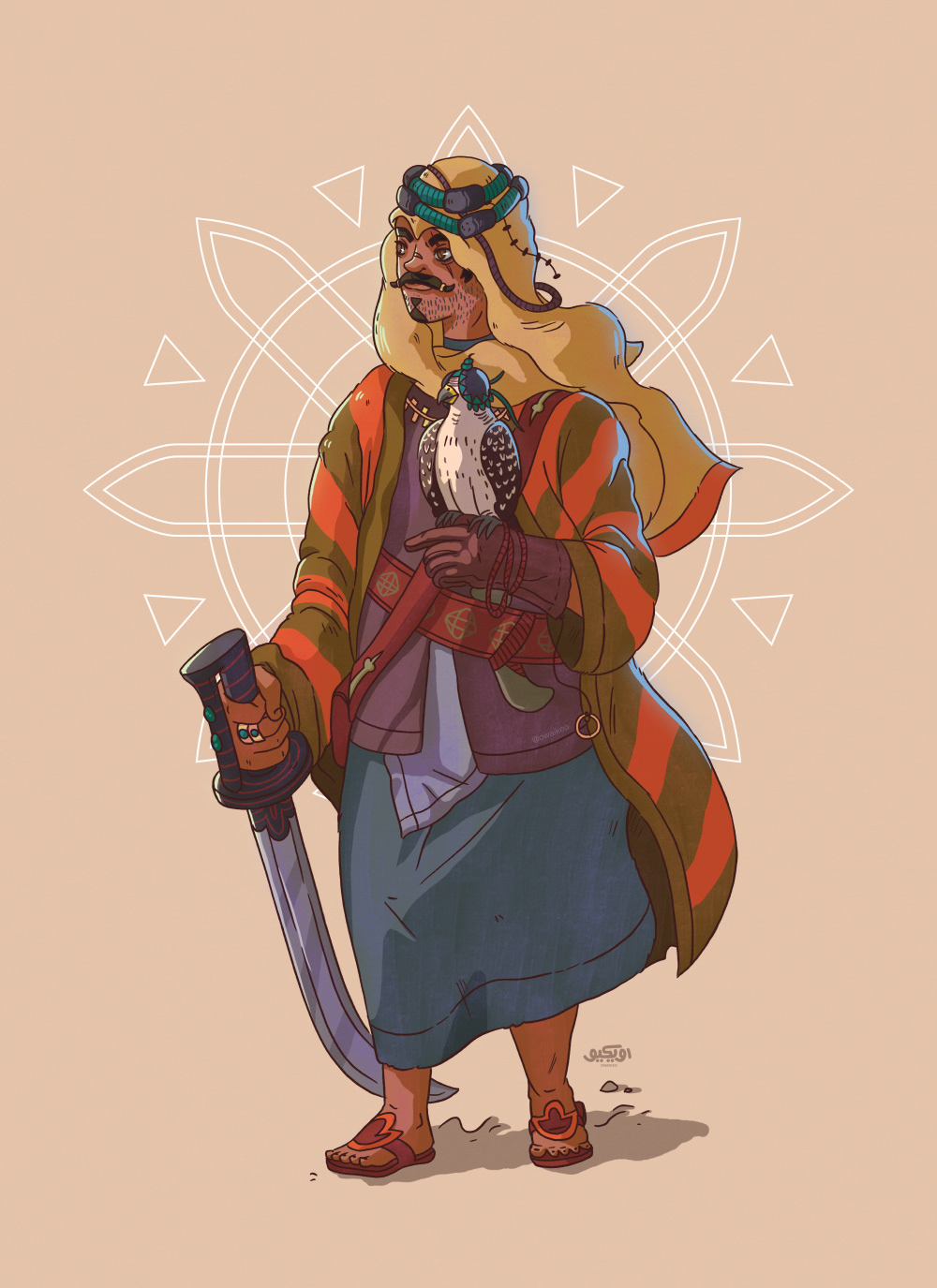 Sager is the Arabic word for "Falcon". This character story showcases a bond of a falcon and a blind man and how their friendship relies each others senses to live another day.